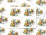 Love Flourishes is the latest stamp in the popular Love series, which began 45 years ago. The stamp art features a fanciful garden of colorful flowers surrounding the word ??Love?? written in cursive script. Hand-painted by artist Anna Bond, the flower garden includes stylized roses, peonies and dahlias in pink, coral and yellow, with pale blue-green berries and fold fronds and leaves.