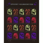 Today, America’s prejudice against black cats is not nearly as severe as it was for the Pilgrims, though the spooky feeling these felines give us still lingers. ?This has led many people to avoid black cats, especially around Halloween. ?Considering this history, it is only fitting that the black cat was pictured on one of the United States’ 2019 Spooky Silhouettes Stamps.