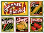 The art for these Stamps was inspired by vintage shipping crate labels, seed packets, and catalogs inspired.??Each stamp in the set was designed and drawn by Michael Doret.